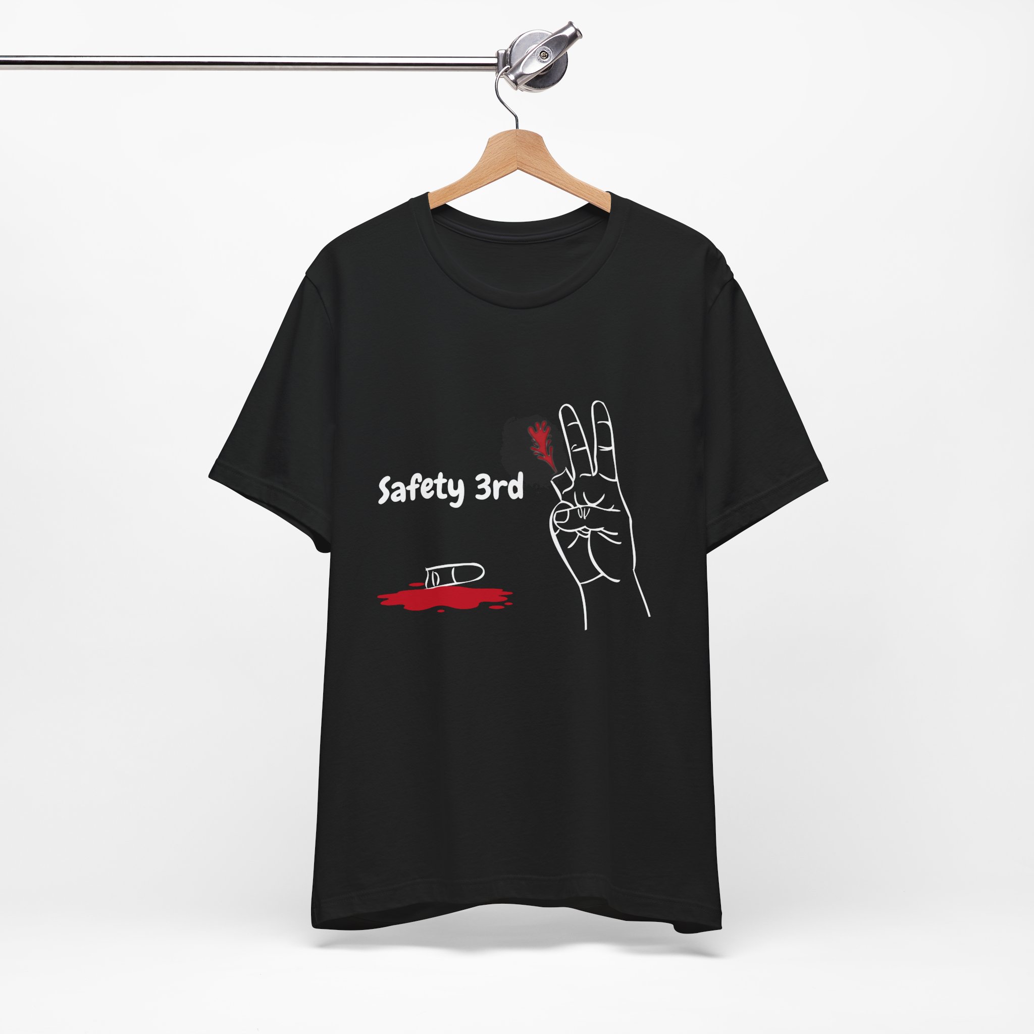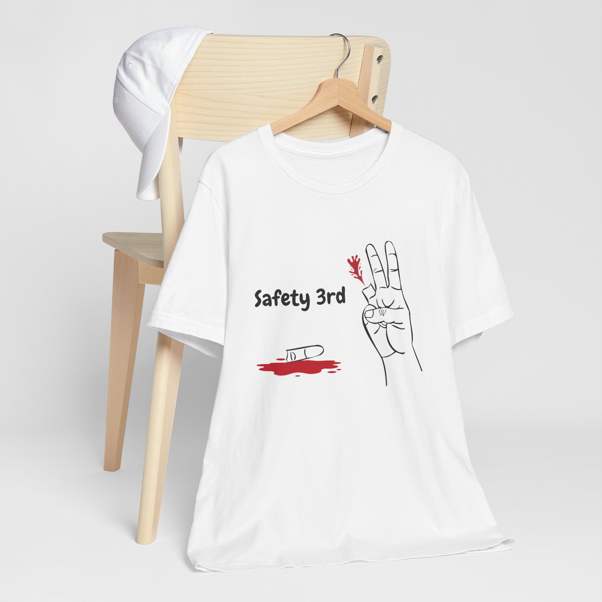 Step into edgy humor with the Safety 3rd Bella+Canvas Tee, featuring a quirky thumbs-up graphic where the thumb is hilariously cut off and bleeding. Made with premium Bella+Canvas fabric, this tee is soft, breathable, and perfect for both men and women. The “Safety 3rd” slogan adds a cheeky touch, making it ideal for risk-takers and lovers of unique, conversation-starting fashion.